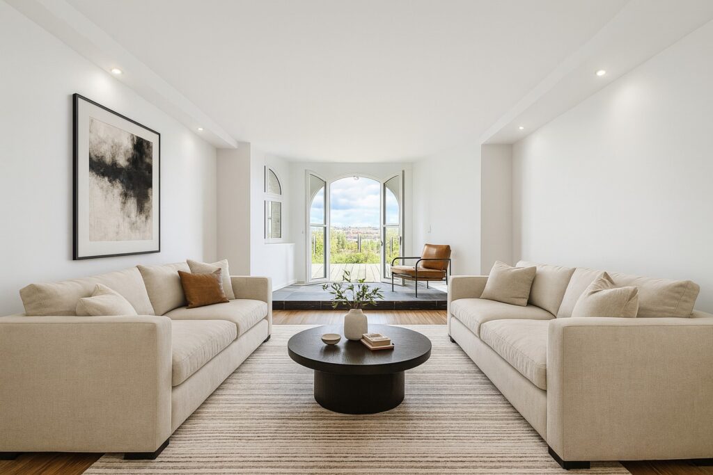Il offre une belle pièce de vie de 44 m² avec salon, salle à manger & cuisine ouverte, le tout donnant sur une terrasse & un jardin avec une vue exceptionnelle sur Rouen.