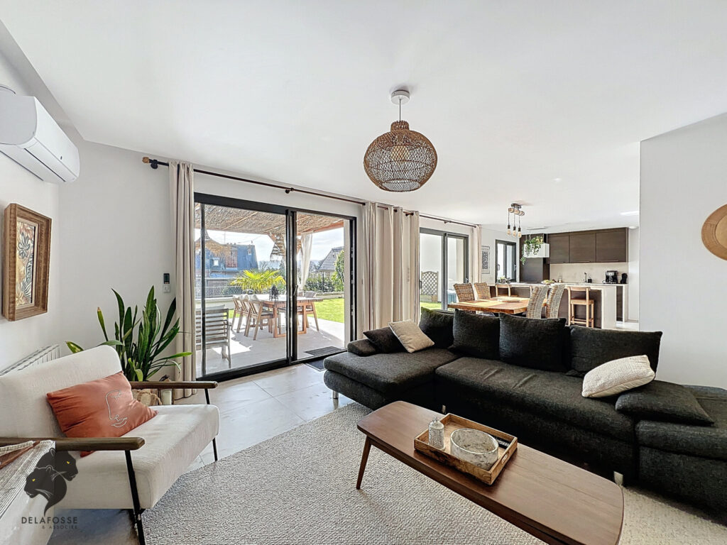 Profitez d’une entrée avec dressing, d’un séjour-salon lumineux avec cuisine ouverte le tout donnant sur terrasse avec jolie pergola & jardin.