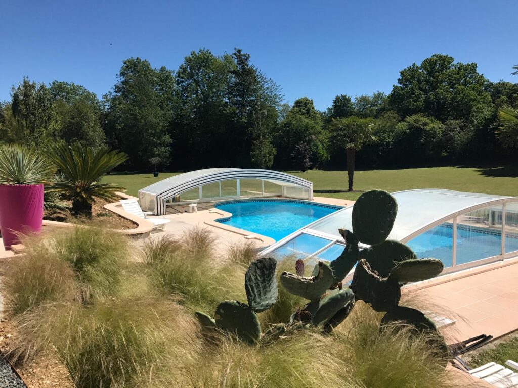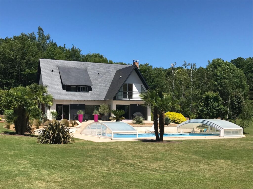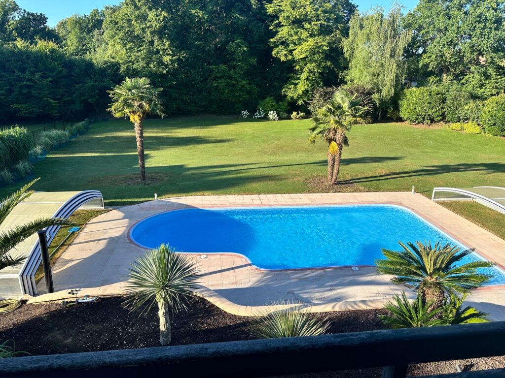L’ensemble ouvre sur une belle terrasse plein sud et une piscine chauffée, invitant à la détente.