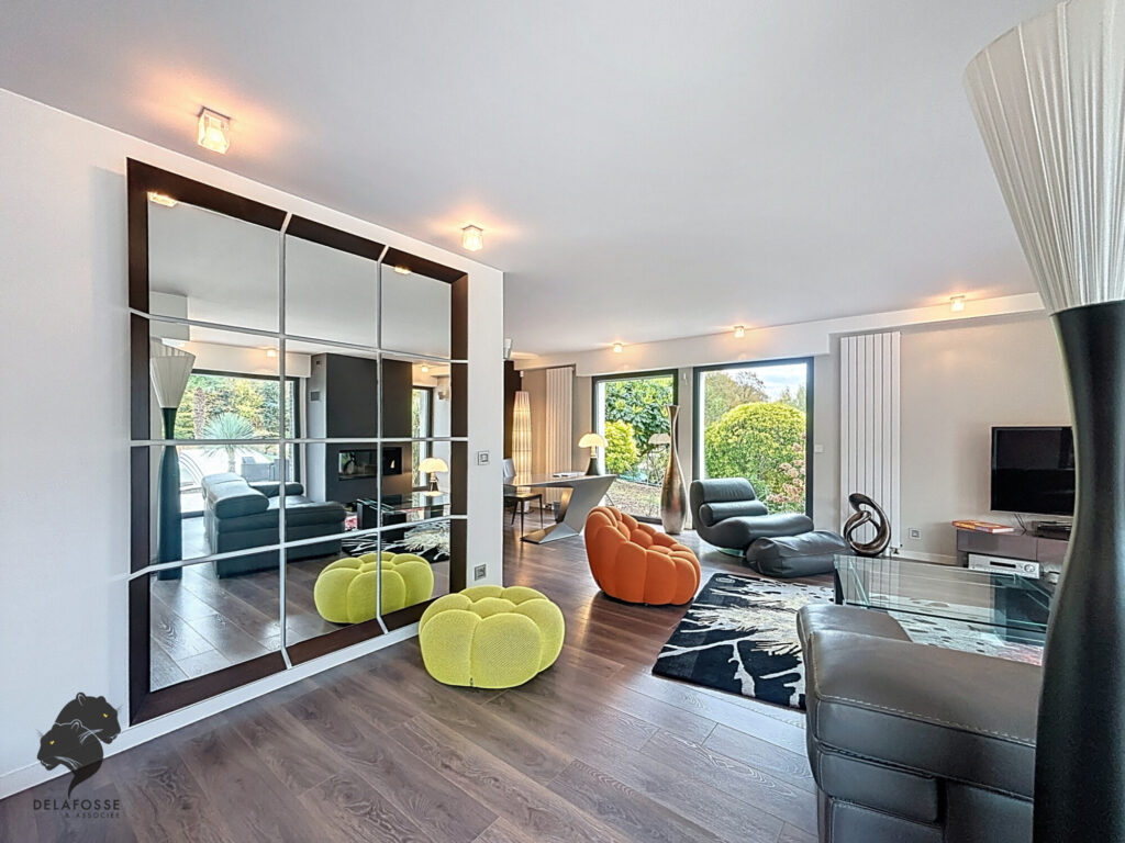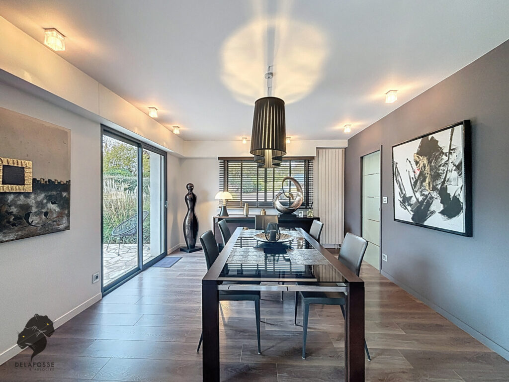 DELAFOSSE & Associée vous invite à découvrir une maison contemporaine d’environ 160m² (259m² au sol) baignée de lumière, située à La Saussaye, dans un environnement verdoyant et préservé.