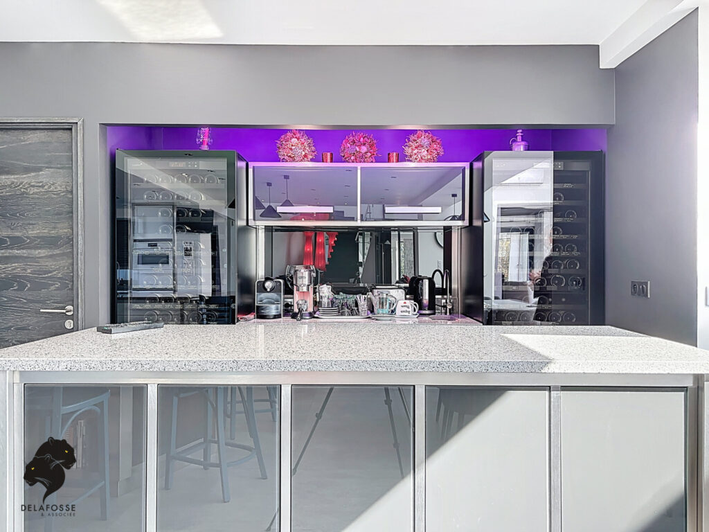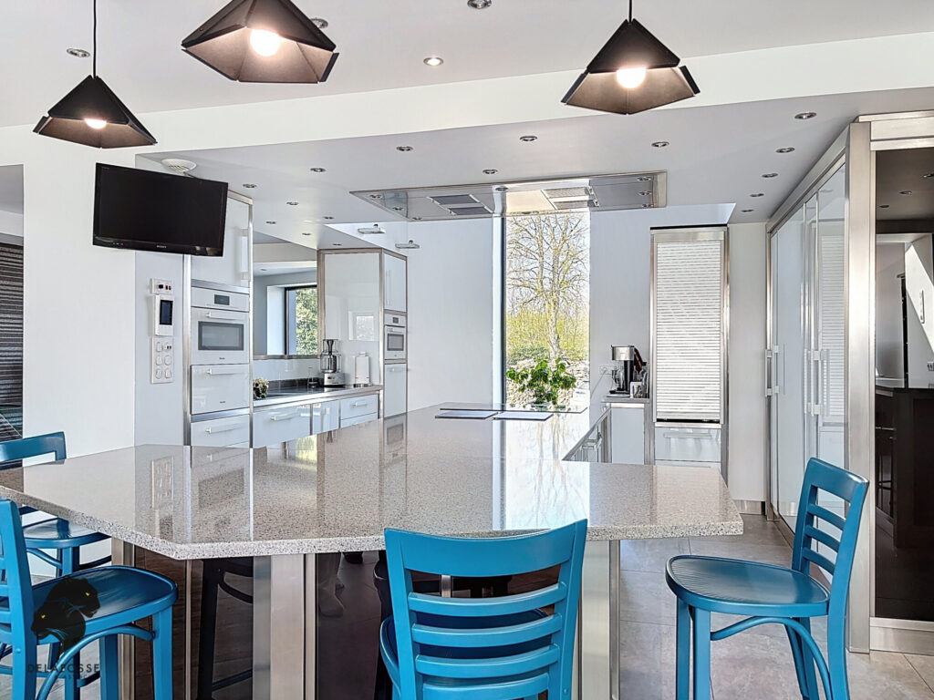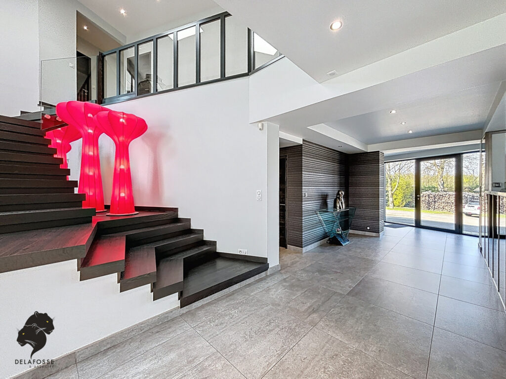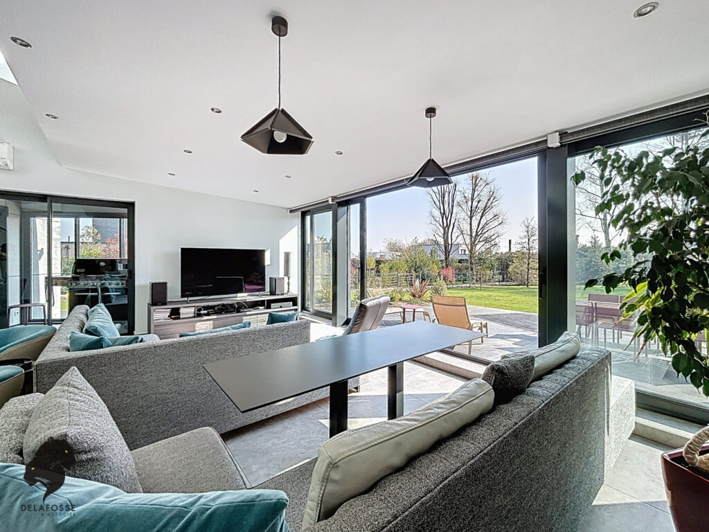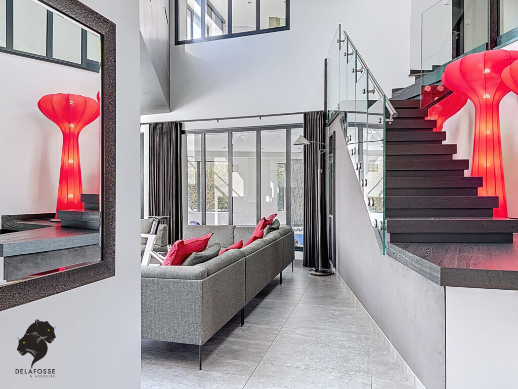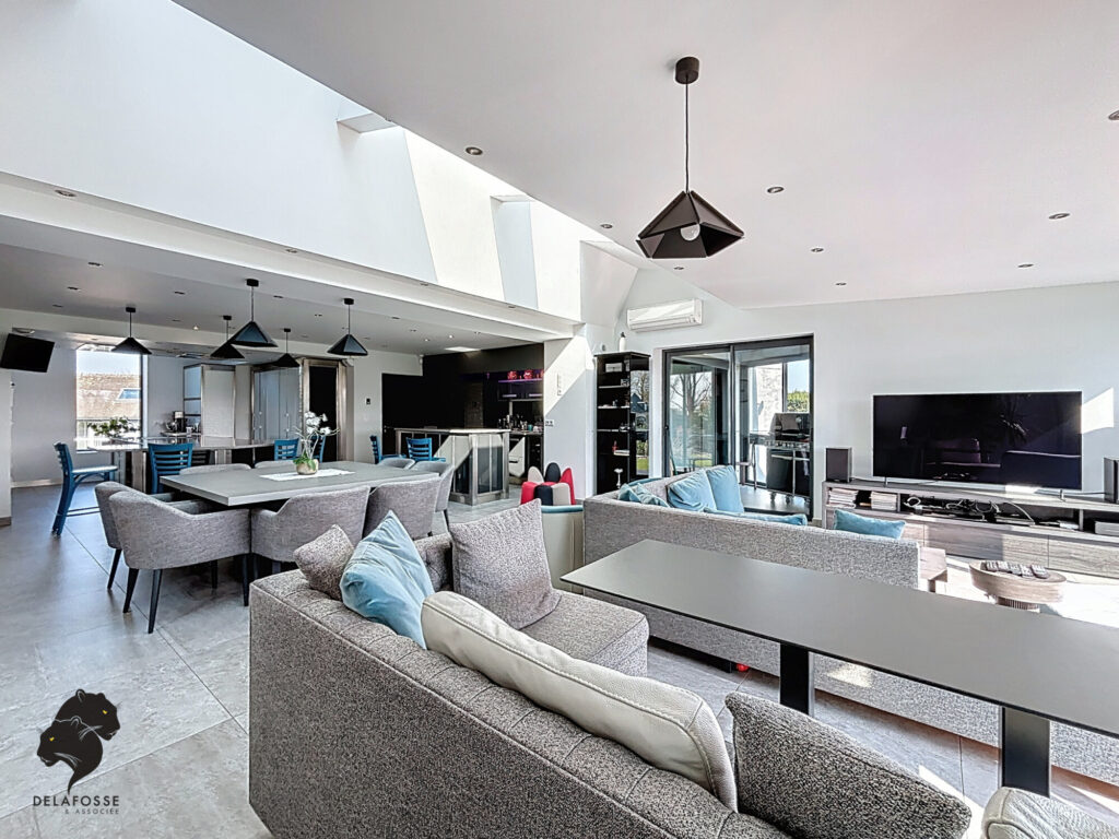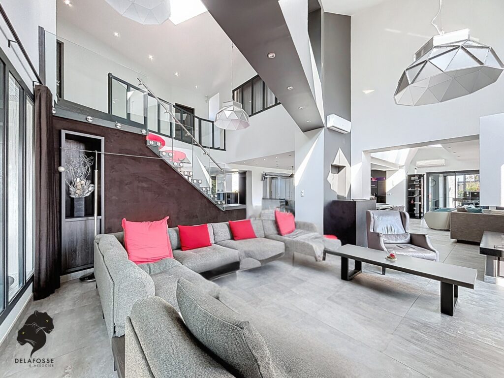 Volumes spectaculaires, lumière omniprésente, espaces de réception ouverts et cuisine haut de gamme composent un cadre de vie moderne.