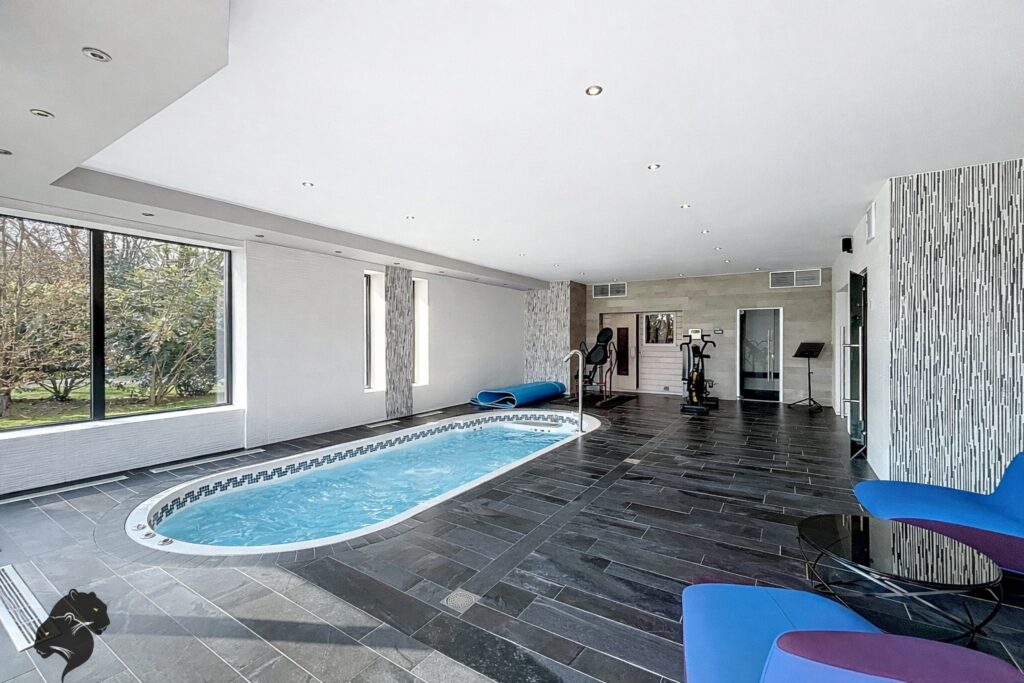 Vous profiterez de 6 chambres, un bureau ainsi qu’un espace bien-être avec spa de nage, sauna, hammam et zone fitness.