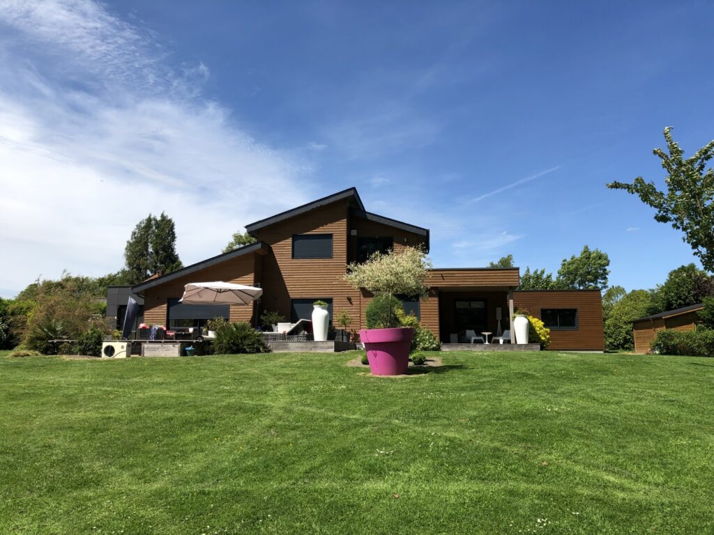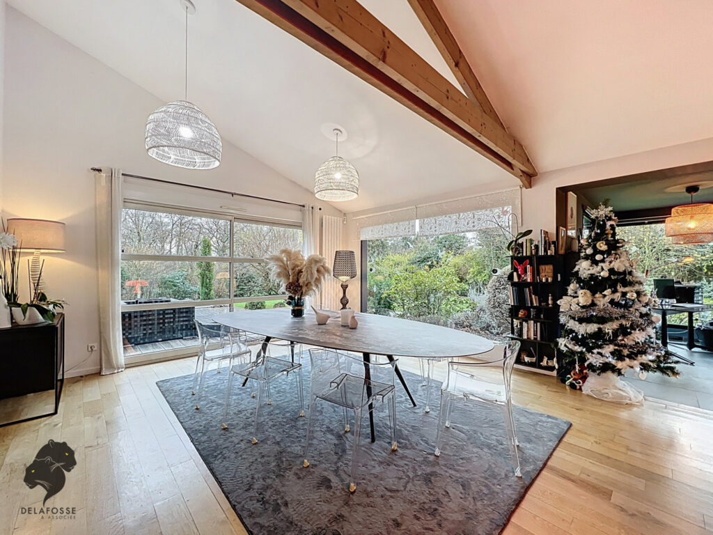 Delafosse & Associée vous propose à la vente une maison d’architecte de 2012 de 210m² en parfait état sur jardin arboré de 2700 m², au calme sur la commune de Montville.